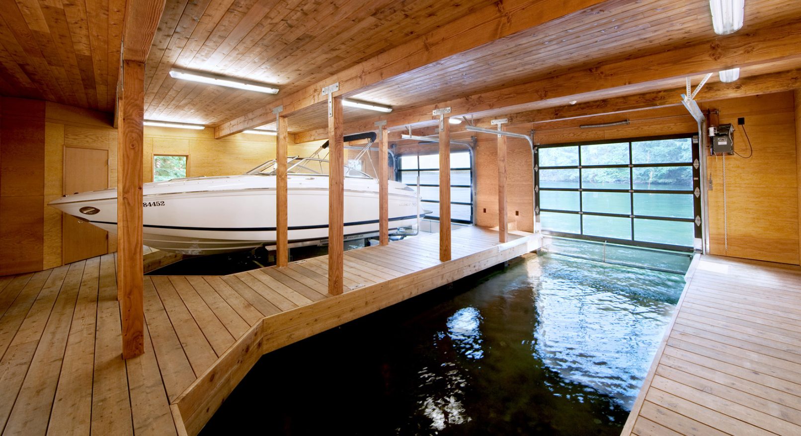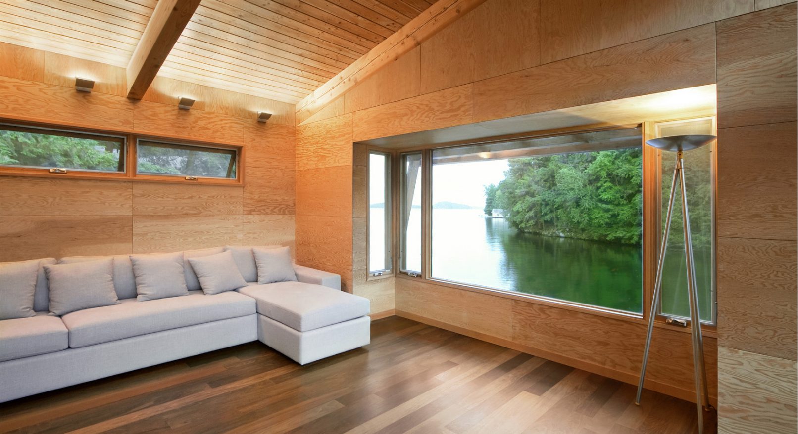 This project for the renovation of an existing boathouse and new 700 sq.ft. second storey guest suite is located in the Muskoka Lakes region of Ontario. Situated at the end of a narrow bay, the design of the new boathouse mediates between extended views out to the wide vista of the distant lake and the immediacy of the enclosed forested shoreline of the bay. The design provides a lens for these varied views as well as a sheltering foil to the open lake breezes and water traffic. The project called for the renovation of an existing two slip boathouse and the addition of a second storey guest suite and roof terrace.